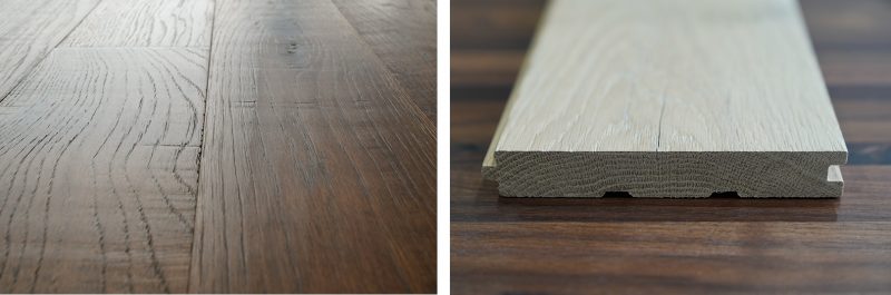 At the time, a lot of textured flooring tried to look like it was reclaimed. In other words, a rough-cut board was resurfaced, thus pulling out all of the wood’s natural character. Then manufacturers added tongue and groove, texture on top, and stain to replicate the texture they were after.