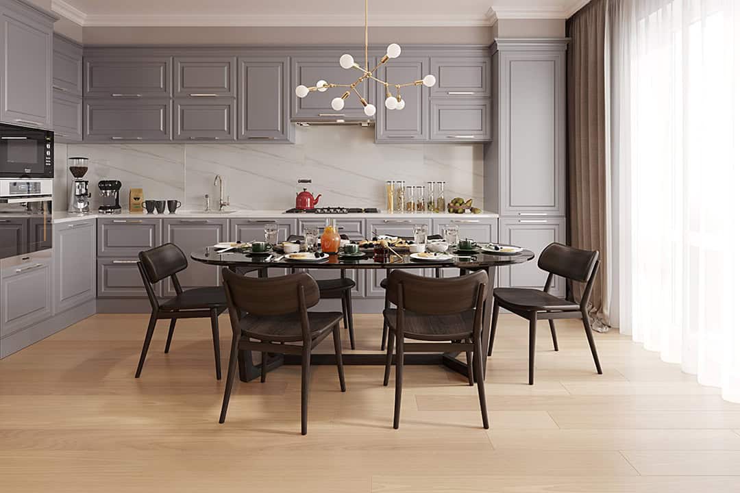 Strikes the perfect balance of clean lines and timeless elegance. Crafted from sustainably harvested Brazilian Oak, these extra-wide 7 1/2″ planks feature a smooth, uniform style with just a touch of brushing to highlight the natural grain. Offered in eight classic color tones, Overture brings a refined simplicity that enhances any space with enduring sophistication.