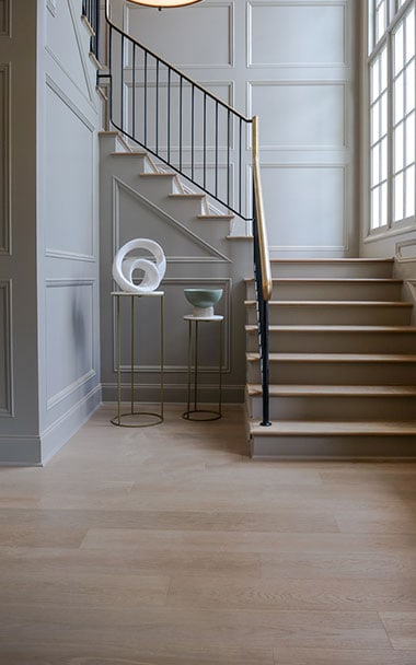Brings enduring sophistication to the home with the timeless beauty of European White Oak. Featuring an A/B grade veneer that offers a consistent grain with minimal knotting, each plank is enhanced by subtle texturing to showcase the wood’s natural elegance. With wide 7-1/2″ planks, lengths ranging from 2′ to 6′, and 50% of boards in every carton reaching full length, Mont Rochard blends French-inspired luxury with modern practicality, creating a refined flooring solution built to last.