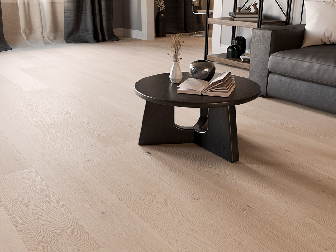 Wire-brushing gently reveals the wood’s unique grain, adding soft texture and natural character to every plank.