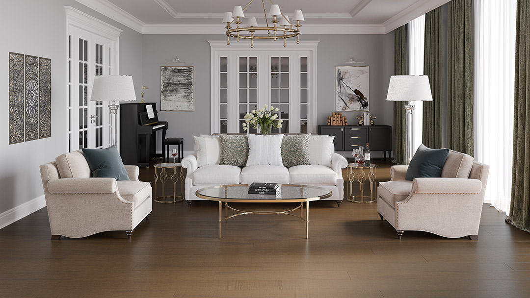 Strikes the perfect balance of clean lines and timeless elegance. Crafted from sustainably harvested Brazilian Oak, these extra-wide 7 1/2″ planks feature a smooth, uniform style with just a touch of brushing to highlight the natural grain. Offered in eight classic color tones, Overture brings a refined simplicity that enhances any space with enduring sophistication.