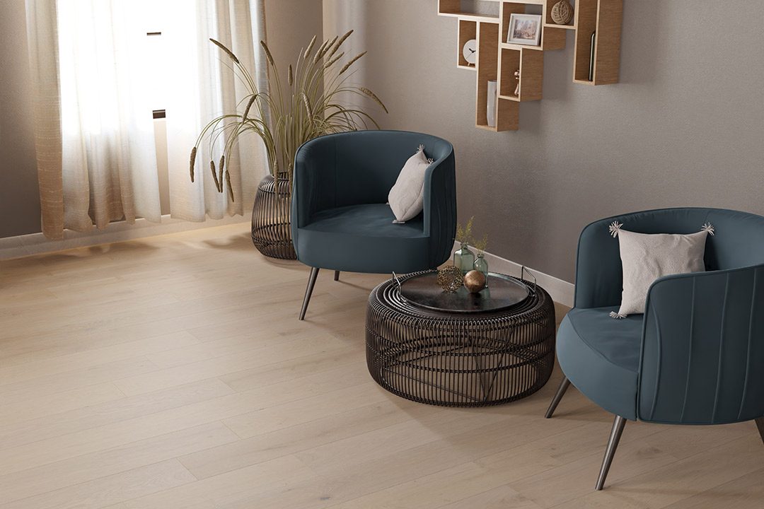 Offers a simple, versatile foundation that beautifully complements nearly any style. Inspired by classic Nordic design, these European Oak floors feature extra-wide planks and lengths up to 7 feet, showcasing organic textures and softly faded tones that bring warmth and balance to your space. Whether complementing your design or becoming the defining feature of the room, Silvian embodies the elegance of minimalism and the timeless truth that less is more.