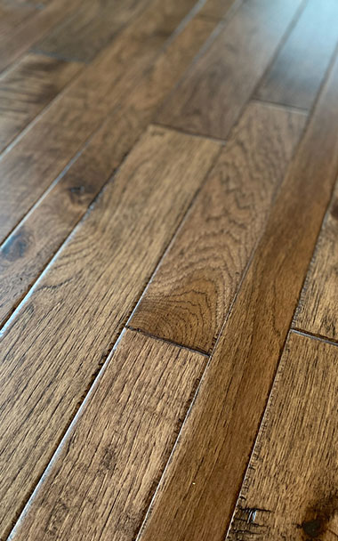 Brings together the strength and character of solid hardwood with a truly timeless appeal. Crafted from Hickory and White Oak, each plank features authentic hand-scraped textures that highlight the natural beauty of the grain, offering a look that is both rugged and refined. With long lengths reaching up to 7 feet, multiple width options for custom design, and a smooth grain surface finished in premium urethane, this 3/4″ solid flooring is built to last while capturing the authenticity of real hardwood at its finest.