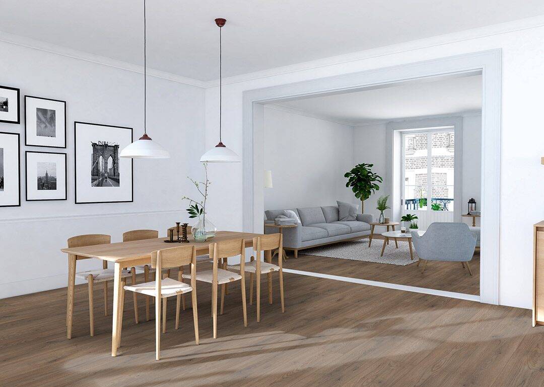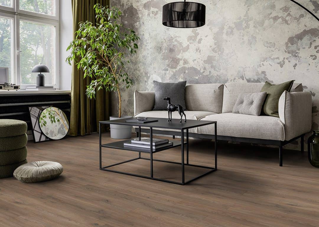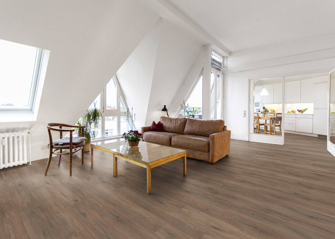 Offers lasting durability, water resistance, and the authentic look of brushed wood grain. Rich in medium to deep brown tones, these 7.6″ wide planks feature embossed-in-register texturing for a realistic, natural surface. Built with EuroCor920 construction and protected by the TriSeal watersafe system, Wels delivers strength and reliability for busy homes. At 8mm thick with an attached 2mm pad, an AC4 wear rating, and easy REALock angle tap locking, this floor combines resilience, beauty, and simple installation.