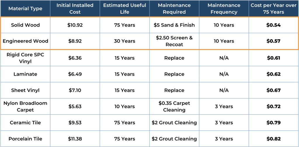 A floor with timeless aesthetic appeal that can last for generations leads to another benefit: avoiding the cost of replacement.
