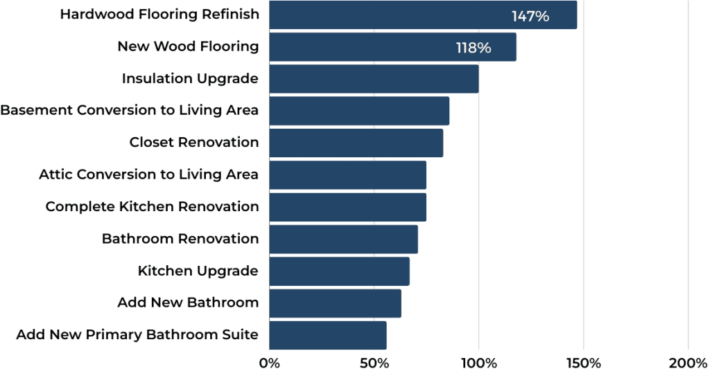 According to the National Association of Realtors’ Remodeling Impact Report, refinishing an existing wood floor (147% ROI) or installing a new wood floor (118% ROI) were the two highest return on investment projects a homeowner could do to their home before selling it.