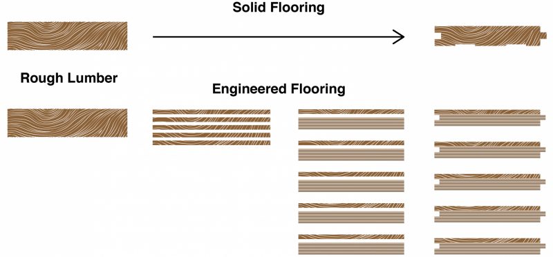 How much lumber is needed to produce solid flooring versus engineered.